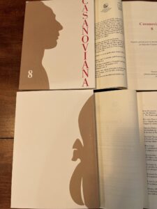 ‘Casanoviana 8’ is now in print! This edition celebrates the tercentenary of Casanova’s birth. Thanks go in particular to all the work of Casanova specialists Professor Antonio Trampus and Gianluca Simeone, and publisher Simone Volpato for making it a reality, and, of course, all of the edition’s contributors.